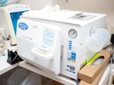 新しい滅菌機器や器具の個別滅菌など、衛生面には最大限配慮。安全で清潔な治療環境をご提供し、患者さまに安心して治療を受けていただけるよう努めています。